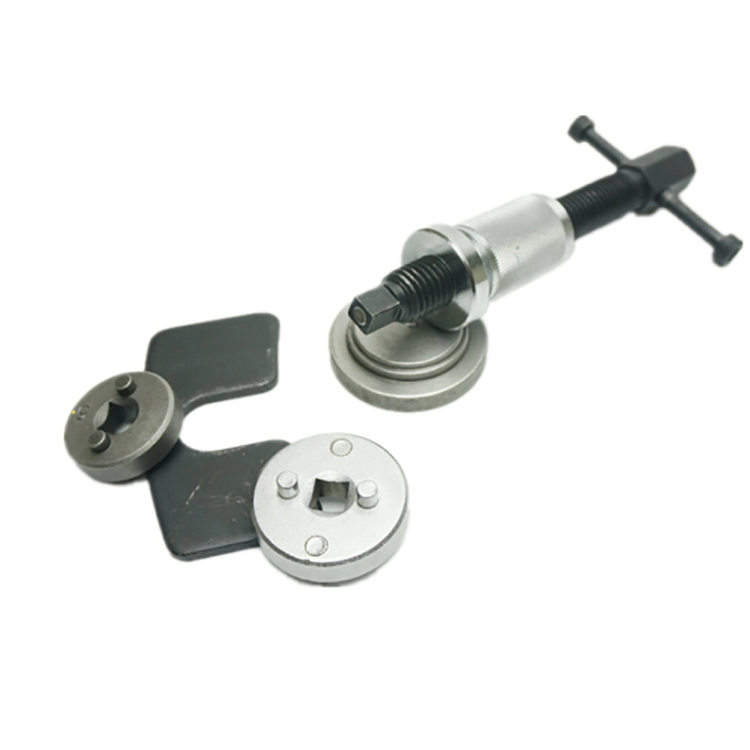 Інструмент для стиснення гальмівних циліндрів 5 предметів Rewolt (T6026) застосовується для втискання поршня за допомогою вкручуваного черв'ячного механізму у всіх типах цангового дискових гальмівних супортів для швидкої та легкої заміни колодок.